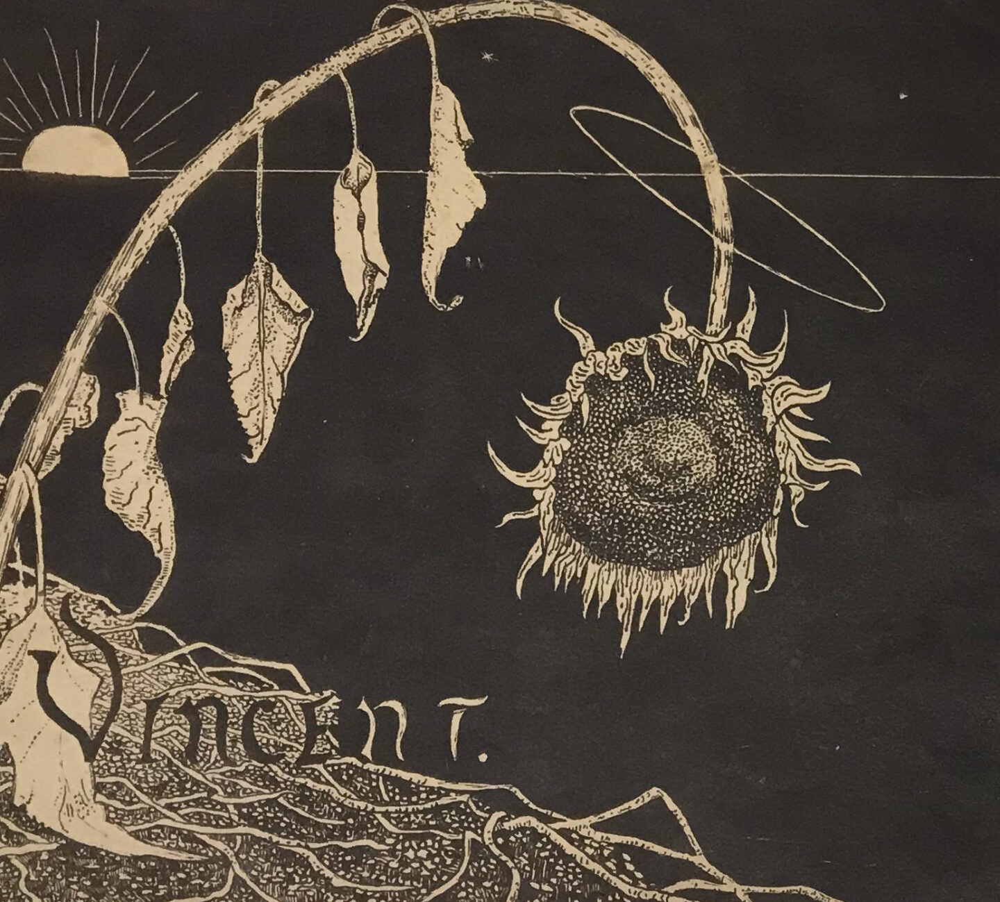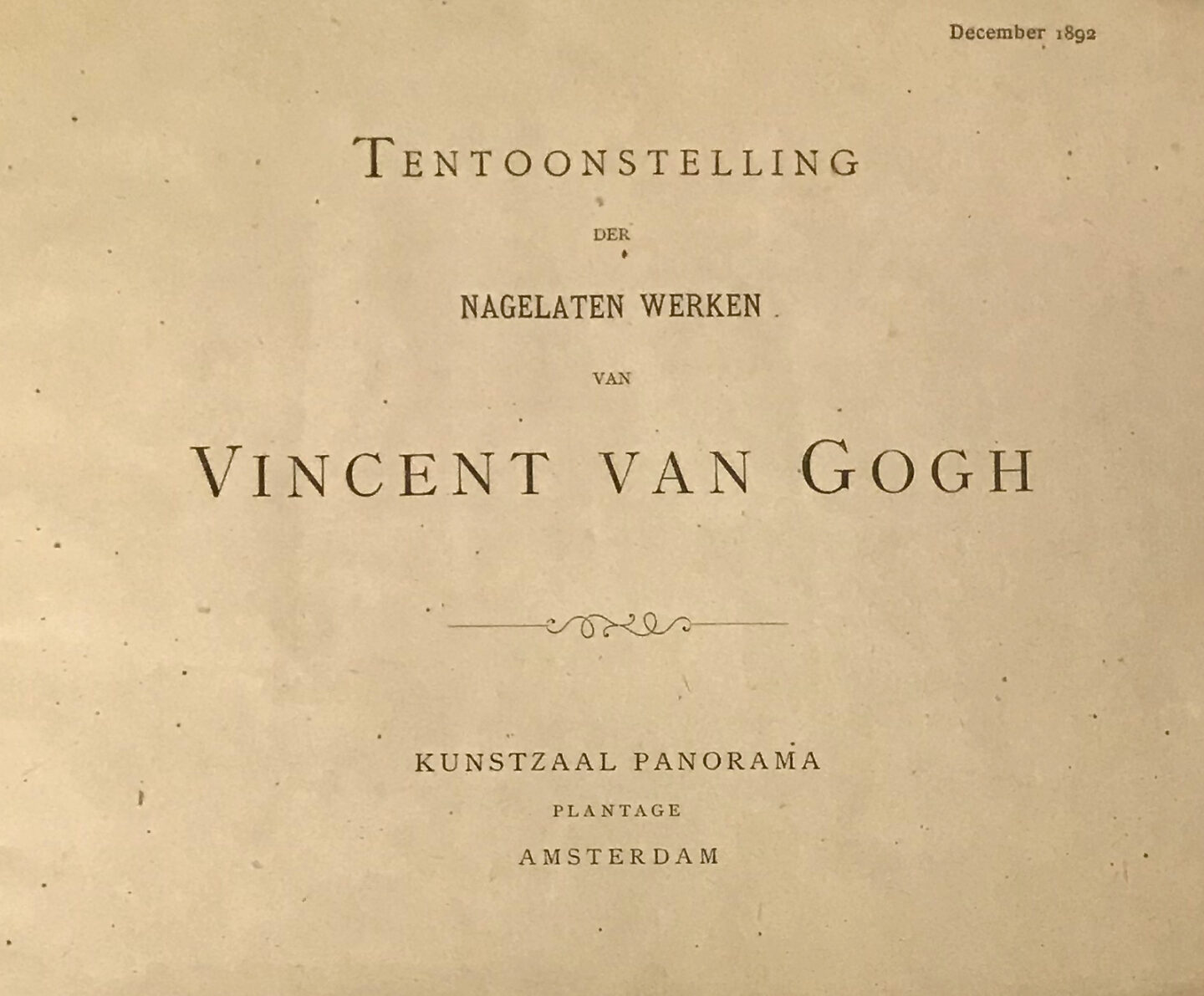 In January of this year, Marquand Library acquired a catalogue of one of the earliest exhibitions of art by Vincent van Gogh following his death in July 1890. This slim publication listed the 107 works on display in 1892 at the Kunstzaal Panorama, Amsterdam, without titles but with a numbered key showing the dates and locations of the artist’s extraordinary paintings and drawings. R. N. Roland Holst wrote a short introduction, where he warned: “This exhibition is for those few among the people who still believe that what is immediately understood is not always the greatest” (translation from the Dutch original). Roland Holst also created a memorable lithographed cover: against a dark ground pierced by the setting sun on a slender horizon line, a wilted sunflower, its head crowned with a slim halo, bends towards the earth, where the name “Vincent” emerges from the roots, its lettering shifting from dark to light as it moves across the page space. The hagiography of Vincent van Gogh had begun.
